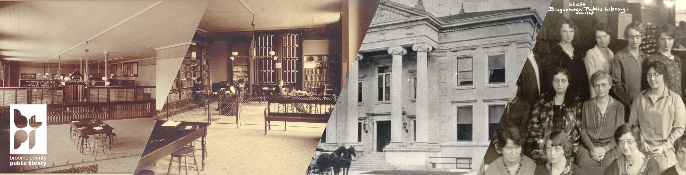 Originally called the Binghamton Public Library, the Broome County Public Library opened in October 1904 after being generously gifted $75,000 by Andrew Carnegie. The building—designed to serve as both a public library and a community center—housed a collection of 14,000 books on the first floor, and an auditorium, the Binghamton Museum of Fine Arts (now part of the Roberson Museum), and the Broome County Historical Society on the second floor.