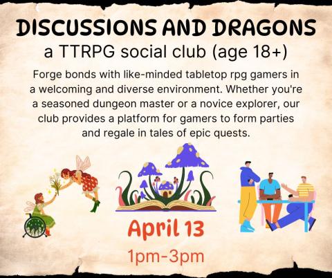 Forge bonds with like-minded tabletop rpg gamers in a welcoming and diverse environment. Whether you're a seasoned dungeon master or a novice explorer, our club provides a platform for gamers to form parties and regale in tales of epic quests. For age 18+.