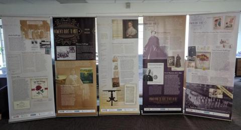 "Recognizing Women's Right to Vote in New York State" celebrates a hundred years of women having the right to vote in New York State, and was also developed with grant support from Humanities New York by the South Central Regional Library Council. The traveling exhibit explores different aspects of the Women's Suffrage movement in New York, from pre-colonial times until the New York State referendum in 1917 and the 19th Amendment in 1920.